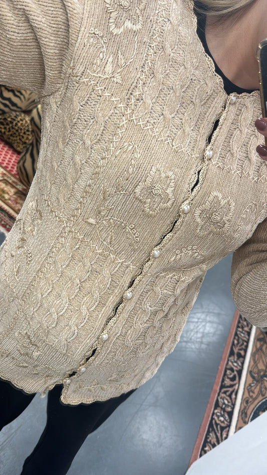 Sold outCream 80s embroidered cardigan